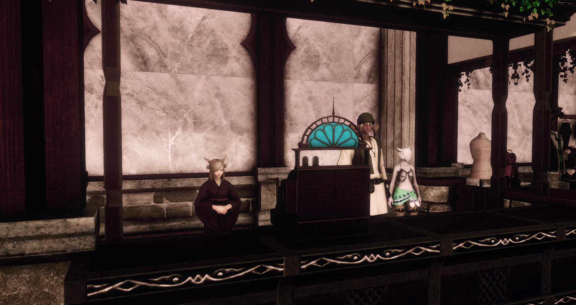 From this meeting, Setsua's zeal for life has only increased and has reminded her that even with her exploits on the battlefield and the trading hall, she must always remember to take care of herself and have fun. In her spare time when not frequenting establishments with her friends, she can be found cheering at the side of a gamba table in the Gold Saucer, or staying upto-date with the latest in Eorzean fashion.